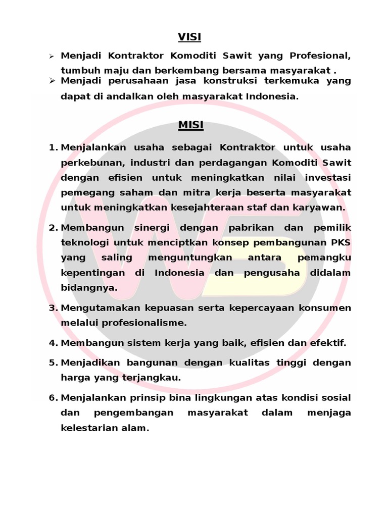 Contoh Visi Dan Misi Kontraktor